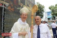 Jacques Técher, maire de Cilaos, saluant l'évêque